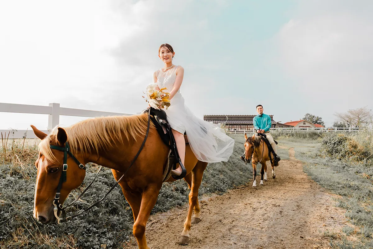 ウェディングドレスを着た状態での乗馬、とても素敵でした!!!